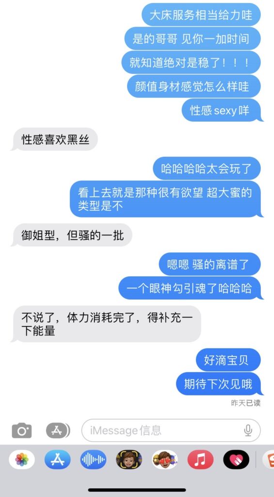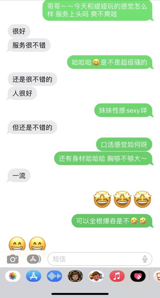 服务: 舌吻kiss👄、裸吹💨、深喉口爆💥、6⃣️9⃣️、港式nuru、古法抓龙筋、毒🐲、胸🐻推、按摩、共浴🛀、吞精(50extra/1次)、全身漫游⛽️、黑丝👠、制服诱惑、激情❤️❤️